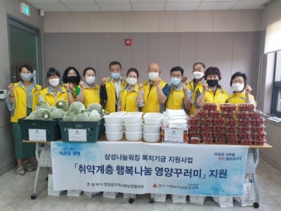 팽성읍에서는 삼성나눔워킹 복지기금을 지원받아 관내에 경제적·신체적 어려움으로 부식 마련이 힘든 취약계층에게 6월부터 10월까지 총 4차례에 걸쳐 영양식, 제철과일 부식 상자 등을 전달 예정이다.