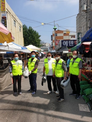 [충청뉴스큐] 안중 민속5일장은 지난 16일 안중읍 전통시장 일대에 코로나19 확산예방 방역 봉사활동을 실시했다.