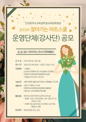 [충청뉴스큐] 인천시교육청학생교육문화회관은 학교문화예술교육사업의 일환으로 ‘2020 찾아가는 아트스쿨’에서 활동할 지역문화예술교육 운영단체를 공모한다.