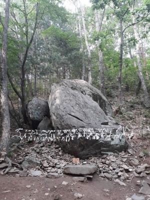 잉태바위를 찾는 사람들은 바위에 둘러쳐진 금줄에 소원지를 끼우며 경건한 마음으로 소원함에 정성을 담는다.