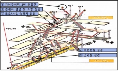 강남구청역 안전관리 현황과 코로나19 방역 대책을 보고 받은 후 시설별로 점검을 수행했다.