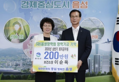 [충청뉴스큐] 이순옥 음성군 보건소장이 명예퇴임을 앞두고 지난 22일 음성장학회에 장학금 200만원을 기탁했다.