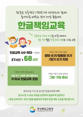 코로나19로 인해 수업일수와 수업시수가 10% 감축 됐지만, 경북교육청은 초등학교 1학년의 체계적인 한글책임교육 실현과 보장을 위해 1~2학년 한글교육 시수를 68시간 이상 확보하도록 했다.