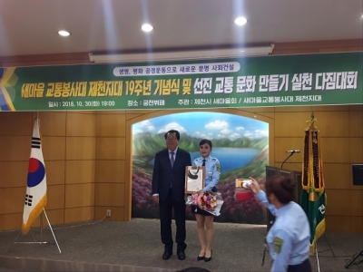이날 행사에는 이상천 제천시장을 비롯하여 홍석용 제천시의회 의장과 시의원, 전원표 도의원 등이 참석하여 행사를 준비한 송은숙 대장과 교통봉사대 대원들을 격려했다.