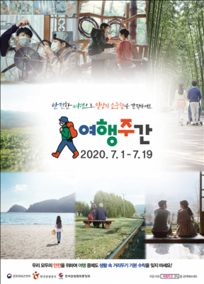 [충청뉴스큐] 문화체육관광부는 한국관광공사, 한국관광협회중앙회, 지자체 등 유관기관과 함께 ‘안전한 여행으로 일상의 소중함을 간직하세요’라는 표어로 ‘2020 특별 여행주간[7. 1.~19.]’을 실시한다.