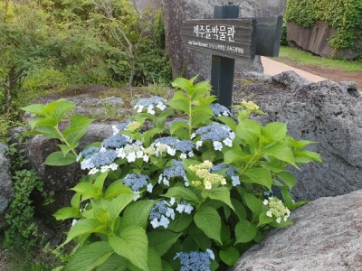 최근 돌문화공원은 초가 형태의 매표소에서부터 돌박물관까지 관람로 주변 서늘한 나무 그늘 사이에 예쁜 산수국이 활짝 피어 있다.