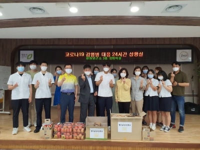 [충청뉴스큐] 24일 청주농업고등학교에서 코로나 19 대응으로 고생하는 보건소 직원들을 응원하기 위해 청원보건소 감염병상황실을 방문했다.