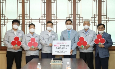 [충청뉴스큐] 자동차부품 개발, 생산 업체인 ㈜서진캠, 동화, 두리, 트리오엔지니어링〔SECO관계사〕은 지난 23일 평택시청 대외협력실에서 지역사회 코로나19 감염 및 확산 방지와 피해지원을 위해 500만원을 기탁했다.