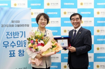 [충청뉴스큐] 경기도의회 교육행정위원회 김경희 의원이 지난 24일 경기도의회 더불어민주당이 주관한 ‘제10대 전반기 의정활동 우수의원’에 선정되는 영예를 안았다.