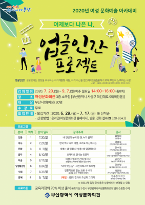 [충청뉴스큐] 부산시 여성문화회관은 문화 콘텐츠를 활용해 여성의 역량을 강화하고 양성평등 실현을 위해 ‘2020년 여성 문화예술 아카데미’의 수강생을 모집한다고 밝혔다.
