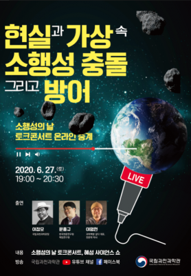 [충청뉴스큐] 과학기술정보통신부 국립과천과학관은 세계 소행성의 날을 기념하기 위한 토크콘서트를 오는 27일에 온라인으로 중계한다.