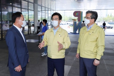 허태정 시장은 이날 해당 시설의 열화상 카메라 설치와 손소독제 설치, 대기동선 시행 여부 등 방역상황을 꼼꼼히 살폈다.