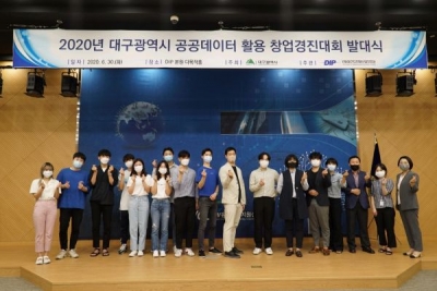 [충청뉴스큐] 30일 오전 10시 DIP 1층 다목적홀에서 ‘2020년 대구광역시 공공데이터 활용 창업경진대회’ 참여자들이 발대식을 가지고 본격적인 창업활동에 나섰다.