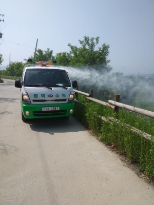 지난 5월부터는 하수구, 쓰레기집하장, 가축사육시설, 다수인이용시설, 관광유원지, 상습수해지역 등에 방역차량을 이용해 매일 집중 방역소독을 진행하고 있다.