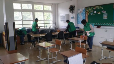 용산면 새마을회는 매주 금요일 구룡초등학교 실내·외 방역 활동을 추진고 있다.