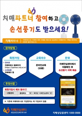 [충청뉴스큐] 옥천군치매안심센터는 “치매파트너 동참하고 손 선풍기도 받고”라는 온라인 치매파트너 홍보 캠페인으로 지역 내 치매파트너를 양성한다고 밝혔다.