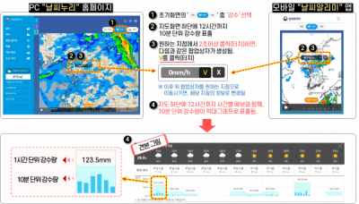 이번 개선을 통해 ‘초단기 강수예측정보’의 강수량 정보는 1시간 단위에서 10분 단위로 상세화해, 12시간까지 국민이 이해하기 쉽도록 그래프 형태로 제공된다.