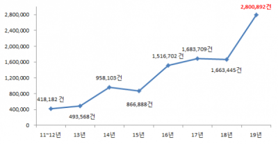 지난해 공공기관에 접수된 공익신고는 2,800,892건으로 ‘공익신고자 보호법’이 제정된 2011년 418,182건에 비해 약 7배 증가했다.