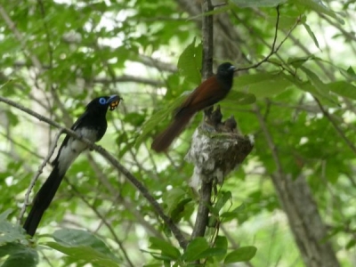 긴꼬리딱새는 긴꼬리딱새과로 5월 초에 와서 번식한다.