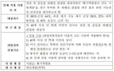 인체 적용 시험에 앞서 세포·동물실험을 통해 황기복합물이 무릎 연골보호에 효과가 있는지 검정을 마쳤다.