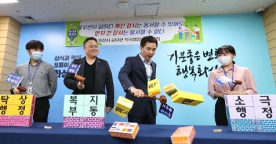 서 시장은 6일 강연을 위해 초빙된 임택진 국무총리실 규제조정실 규제혁신기획관 과장, 직원대표 2명과 함께 적극행정 퍼포먼스를 선보였다.