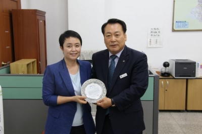 [충청뉴스큐] 이재명 경기도지사는 7일 경기도의회 교육기획위원회 천영미 위원장에게 그간 헌신적인 노력으로 전반기 교육기획위원회를 성공적으로 이끈 공을 인정해 공로패를 수여했다.