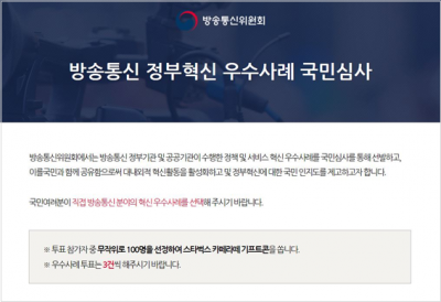 이헌 혁신기획담당관은 “국민이 직접 방송통신 분야 혁신 우수사례를 선정하는데 참여함으로써 그간 방통위와 방송통신 공공기관들이 수행한 정책 및 서비스 혁신사례가 보다 쉽게 국민에게 공유되고, 정부혁신에 대한 국민 인식도 높일 수 있을 것”이라고 말했다.