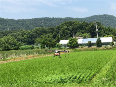드론을 활용한 벼 병해충 방제는 방제작업이 간소하고 상공에서 바로 약제가 분사돼 약 손실이 적으며 주변 농작물에 피해가 없어 최근 대규모 쌀 재배단지 농가들이 많이 시도하고 있다.