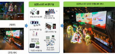 ‘AR e스포츠 중계 기술’을 통해 구현될 ‘실시간 선수 AR 중계’는 선수가 경기장에 직접 오지 않더라도 현장 관객과 시청자들은 선수가 경기석에서 경기를 하는 형태의 화면을 볼 수 있게 하는 기술이다.