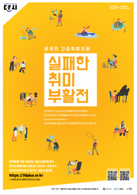 [충청뉴스큐] 서울시50플러스재단은 취미용품의 나눔과 연대로 ‘실패’에 대한 인식을 개선하고 슬기로운 집콕생활도 돕는 ‘실패한 취미부활전’을 온라인으로 개최한다.