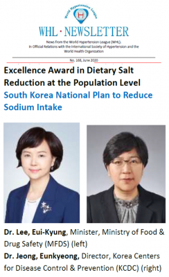 WHL 우수상은 나트륨 섭취 줄이기로 고혈압을 예방한 성과가 있는 개인 또는 기관을 선정해 시상하는 10개 부문 중 하나로 한국에서 수상한 사례는 이번이 처음이다.