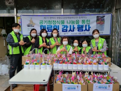 이날 나눔행사에는 생활공감정책참여단원 10여명이 참여했으며 공기청정화분은 관내 보건소 2곳과 선별진료소 2곳에 전달됐다.