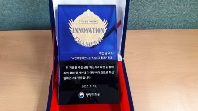 [충청뉴스큐] 대전시는 행정안전부 주최로 열린 ‘주민생활 혁신사례 확산지원사업’ 데모데이 행사에서 대전시가 주민생활 우수 혁신사례로 선정돼 ‘혁신 챔피언 인증패’를 수상했다고 16일 밝혔다.