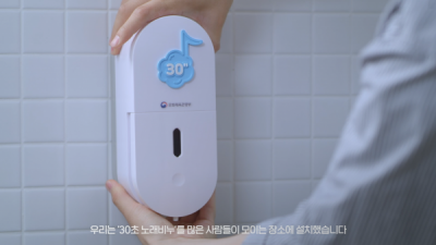‘30초 노래비누’ 캠페인이란 코로나19 생활방역에서 강조하고 있는 30초 이상 손 씻기를 돕기 위해 물비누기기 이용 시 비누거품과 함께 30초짜리 음악이 나오는 ‘노래 비누’를 제작하고 설치한 캠페인이다.