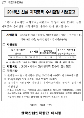 [충청뉴스큐] 지난해 국가기술자격으로 신설된 '농작업안전보건기사' 제1회 필기시험이 오는 12월 22일 실시된다.
