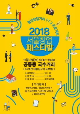 [충청뉴스큐] 서울시와 인덕대학교, 노원구가 함께하는 캠퍼스타운 사업"청년창업거리 1·7·3 프로젝트"의 하나로, 오는 3일 오전 11시 서울공릉초등학교 운동장에서 “2018 서울창업페스티벌”을 개최한다.