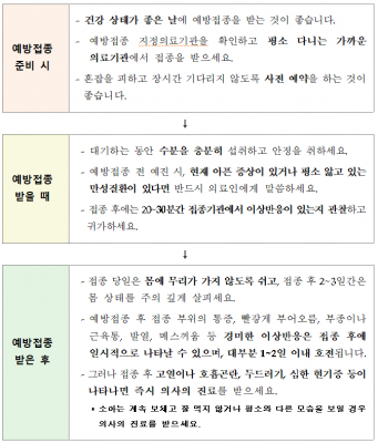 질병관리본부는 어린이, 보호자 및 어르신들께서 두 번 걸음하지 않도록 지정의료기관, 관할 보건소 및 질병관리본부 콜센터로 사전에 문의하여 당일 접종이 가능한 의료기관을 안내받은 후 방문해 줄 것을 당부했다.