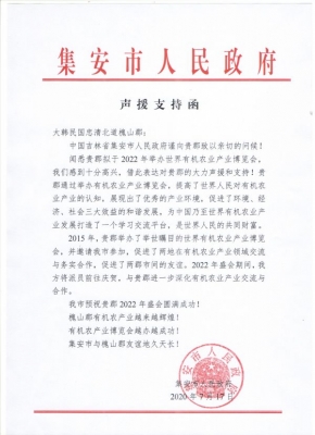 [충청뉴스큐] 충북 괴산군의 자매도시인 중국 길림성 집안시가 2022 괴산세계유기농산업엑스포의 성공개최를 지지하는 서신을 보내왔다.
