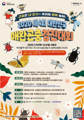 [충청뉴스큐] 서울특별시와 농촌진흥청은 ‘2020 제4회 대한민국 애완곤충경진대회’를 오는 30일부터 8월 2일까지 총 4일간 세텍에서 공동으로 개최한다고 밝혔다.
