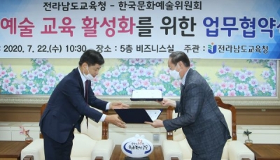전라남도교육청은 22일 오전 청사 5층 비즈니스실에서 한국문화예술위원회와 업무협약을 체결하고 다양한 예술교육 지원 체제 구축을 통해 학교예술교육을 활성화하기로 했다.