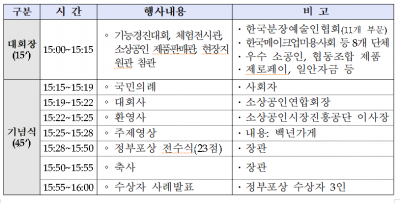 제3회 ‘소상공인의 날’을 맞아 개최된 소상공인 대회는 2006년부터 매년 열려 온 정부와 소상공인이 함께하는 최대 행사로, ‘함께 만드는 우리동네, 함께 누리는 대한민국’이라는 슬로건을 걸고 유공자 시상식, 기능경진대회, 우수제품 판매관 및 체험전시관 운영 등 다양한 행사로 진행됐다.