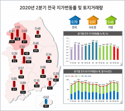 [충청뉴스큐] 국토교통부는 올해 2분기 전국 지가는 0.79% 상승했으며 상승폭은 ‘20년 1분기 대비 0.13%p, ’19년 2분기 대비 0.18%p 감소했다고 밝혔다.