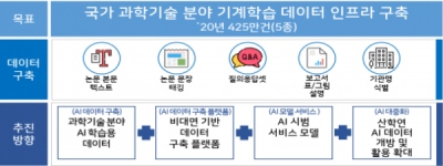 국내논문과 국가 연구개발 보고서 원문을 대상으로 과학기술분야 기계학습 데이터 5종을 구축하며 최대 4백25만여 건의 과학기술 기계학습 데이터가 사업물량이다.