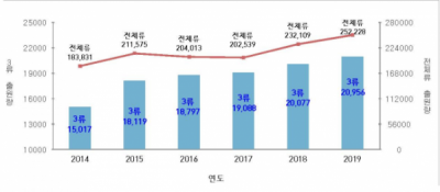 이는 온라인을 통한 화장품 유통이 활성화되고 자체 생산시설 없이 OEM, ODM 업체 위탁생산 등으로 중소·벤처기업 및 개인사업자의 화장품 시장 진입이 상대적으로 용이하기 때문인 것으로 풀이된다.
