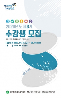 [충청뉴스큐] 대전시 여성가족원은 오는 31일부터 8월 9일까지 2020년 제3기 강좌 수강생 6,799명을 모집한다고 29일 밝혔다.