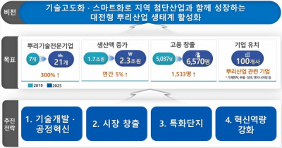 또한, 이를 통해 2025년까지 현재 7개社인 뿌리기술 전문기업 핵심뿌리기술을 보유하고 재무안전성과 기술역량이 높은 기업으로 산업부 국가뿌리산업진흥센터 인증 을 21개社로 늘리고 매출액 2.3조원, 고용창출 1,533명, 기계·부품·엔지니어링 등 뿌리산업 관련 기업 100개社 사를 유치한다는 계획이라고 전했다.