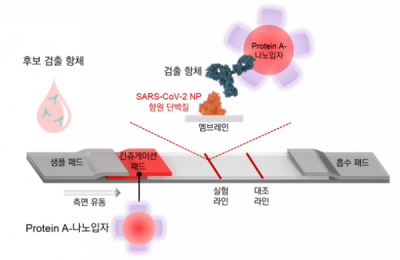 항원 신속진단키트는 채취한 검체 시료를 샘플패드에 흡수시키면 시료가 이동하면서 코로나19 바이러스가 존재하는 경우 발색 나노입자를 포함한 항체와 바이러스 항원이 결합해 육안으로 감염여부를 판단하는 원리로 작동되며 신속진단키트 개발을 위해서는 코로나19 바이러스에 특이적으로 결합하는 우수한 항체를 확보하는 것이 가장 중요하다.