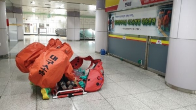 119특수구조단 주관으로 실시된 이번 훈련은 경찰, 용산역 자위소방대 등 유관기관 30여명이 참여한 가운데 대합실 내 화학물질테러를 실전처럼 가정해 실시했다.