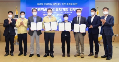 [충청뉴스큐] 광주광역시는 AI 유치기업인 ㈜바이스, ㈜샌드글래스, ㈜파크에이아이와 광주형 인공지능 비즈니스 기반 조성을 위한 23~25번째 업무협약을 체결하고 각 기업별 본사이전, 법인설립 및 지역사무소 설립을 통해 광주 인공지능 생태계 조성에 적극 협력키로 했다.