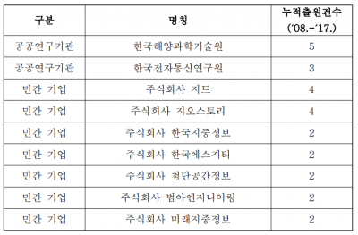 출원인은 한국해양과학기술원, 한국전자통신연구원 등 정부출연 공공연구기관과 함께 다수의 민간 기업이 포함되어 있다.